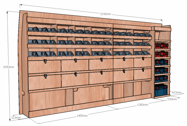 Structure Renforcée et Protectrice : Le meuble intègre un fond arrière de 8 mm qui renforce sa structure et le solidarise. Un avantage économique direct pour vous : il protège efficacement la carrosserie de votre fourgon, vous dispensant d’installer un habillage latéral supplémentaire !