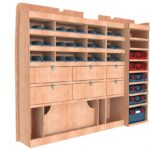 • Accès Immédiat à vos équipements :  : Trois niveaux d’étagères dont deux spécialement conçus pour accueillir des bacs à bec (nombre modulables). Finie la recherche de petites pièces !