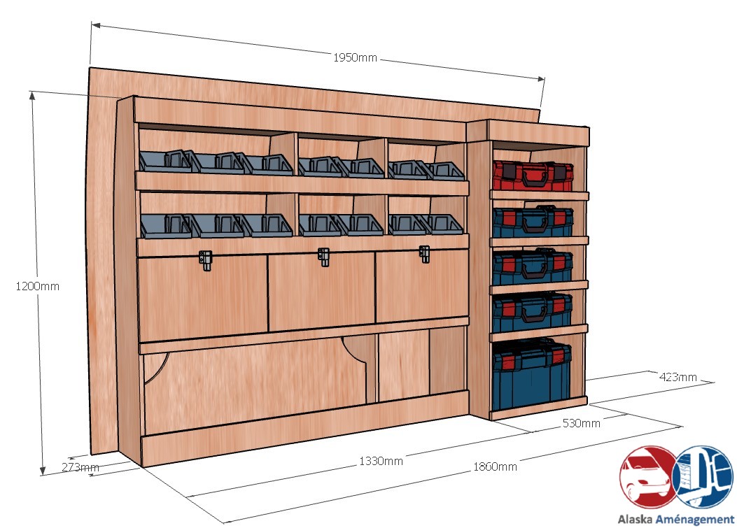 Ce meuble de rangement KRMG002-N (pour le latéral « Gauche » de votre véhicule) offre une solution de stockage polyvalente et fonctionnelle avec cinq niveaux de stockage. Il comprend des étagères pour bacs à bec, des clapets basculants, et un module spécifique pour les mallettes d’électroportatif. Une étagère supérieure est conçue pour les objets longs. Son fond arrière intégré assure la rigidité et protège la carrosserie du véhicule, évitant un habillage supplémentaire. Le meuble est disponible en contreplaqué brut ou filmé. |