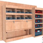Ce meuble de rangement KRMG002-N (pour le latéral « Gauche » de votre véhicule) offre une solution de stockage polyvalente et fonctionnelle avec cinq niveaux de stockage. Il comprend des étagères pour bacs à bec, des clapets basculants, et un module spécifique pour les mallettes d’électroportatif. Une étagère supérieure est conçue pour les objets longs. Son fond arrière intégré assure la rigidité et protège la carrosserie du véhicule, évitant un habillage supplémentaire. Le meuble est disponible en contreplaqué brut ou filmé.