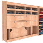 • Module pour Électroportatif : Un module vertical dédié au rangement de vos mallettes d’outils (type Festool Systainer, Makita, Facom etc.). Des rebords de maintien assurent une stabilité parfaite pendant le transport.