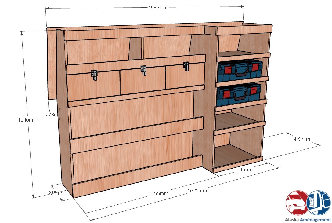 • Structure Renforcée et Protectrice : Le meuble intègre un fond arrière de 8 mm qui renforce sa structure et le solidarise. Un avantage économique direct pour vous : il protège efficacement la carrosserie de votre fourgonnette, vous dispensant d’installer un habillage latéral supplémentaire !