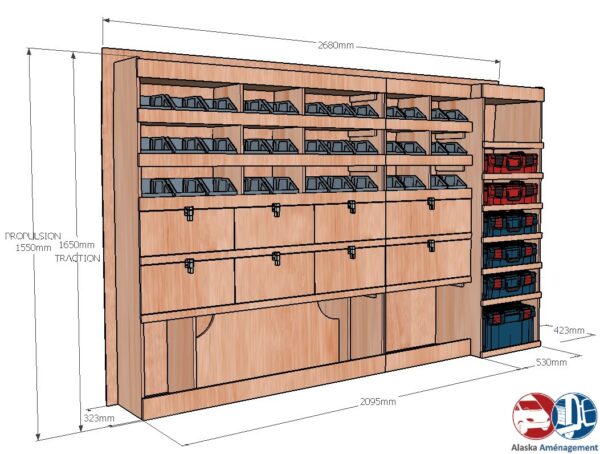 • Structure Renforcée et Protectrice : Le meuble intègre un fond arrière de 8 mm qui renforce sa structure et le solidarise. Un avantage économique direct pour vous : il protège efficacement la carrosserie de votre fourgon, vous dispensant d’installer un habillage latéral supplémentaire !