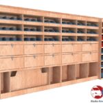 • Accès Immédiat à vos équipements :  : Quatre niveaux d’étagères dont trois spécialement conçus pour accueillir des bacs à bec (nombre modulables). Finie la recherche de petites pièces !