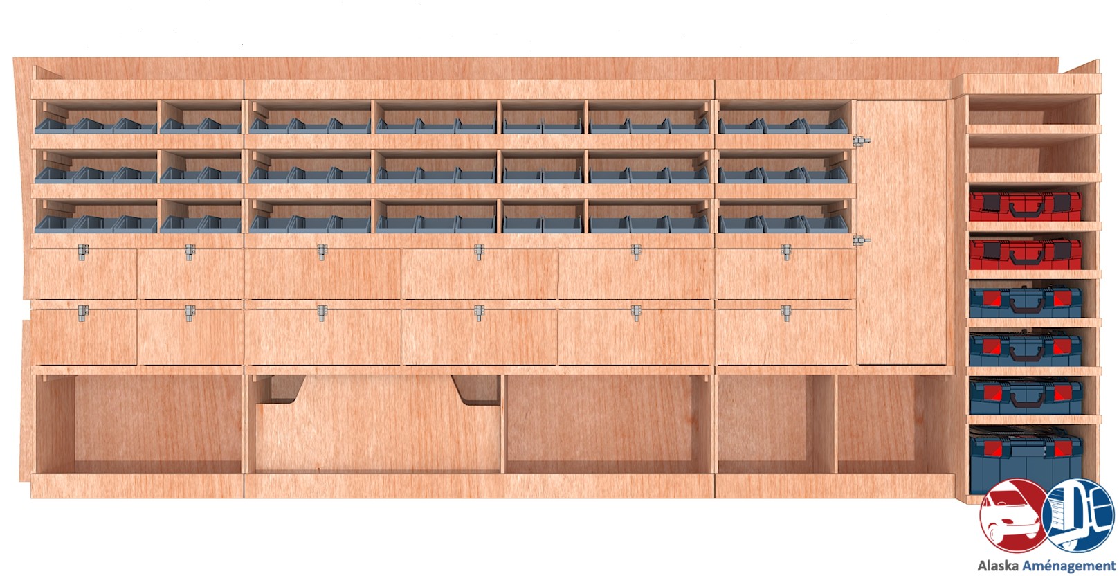 • Gain de place : Deux rangées de clapets, parfait pour stocker votre outillage et vos consommables de valeur à l’abri des chocs et des regards.