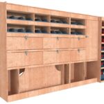 Ce meuble de rangement KRMG003-N (pour le latéral « Gauche » de votre véhicule) offre une solution polyvalente avec six niveaux de stockage fonctionnels. Il comprend des étagères pour bacs à bec, des clapets basculants, un placard et un module spécifique pour les mallettes d’électroportatif. Une étagère supérieure est conçue pour les objets longs. Son fond arrière intégré assure la rigidité et protège la carrosserie du véhicule, évitant un habillage supplémentaire. Le meuble est disponible en contreplaqué brut ou filmé.