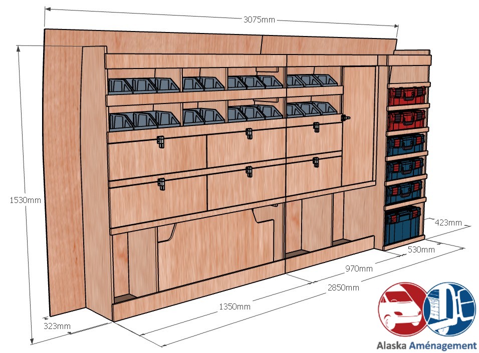 • Structure Renforcée et Protectrice : Le meuble intègre un fond arrière de 8 mm qui renforce sa structure et le solidarise. Un avantage économique direct pour vous : il protège efficacement la carrosserie de votre fourgon, vous dispensant d’installer un habillage latéral supplémentaire !