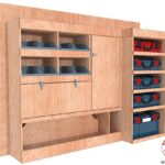 Solution complète avec placard, clapets et rangement pour mallettes d’électroportatifs, pensée pour les professionnels exigeants.