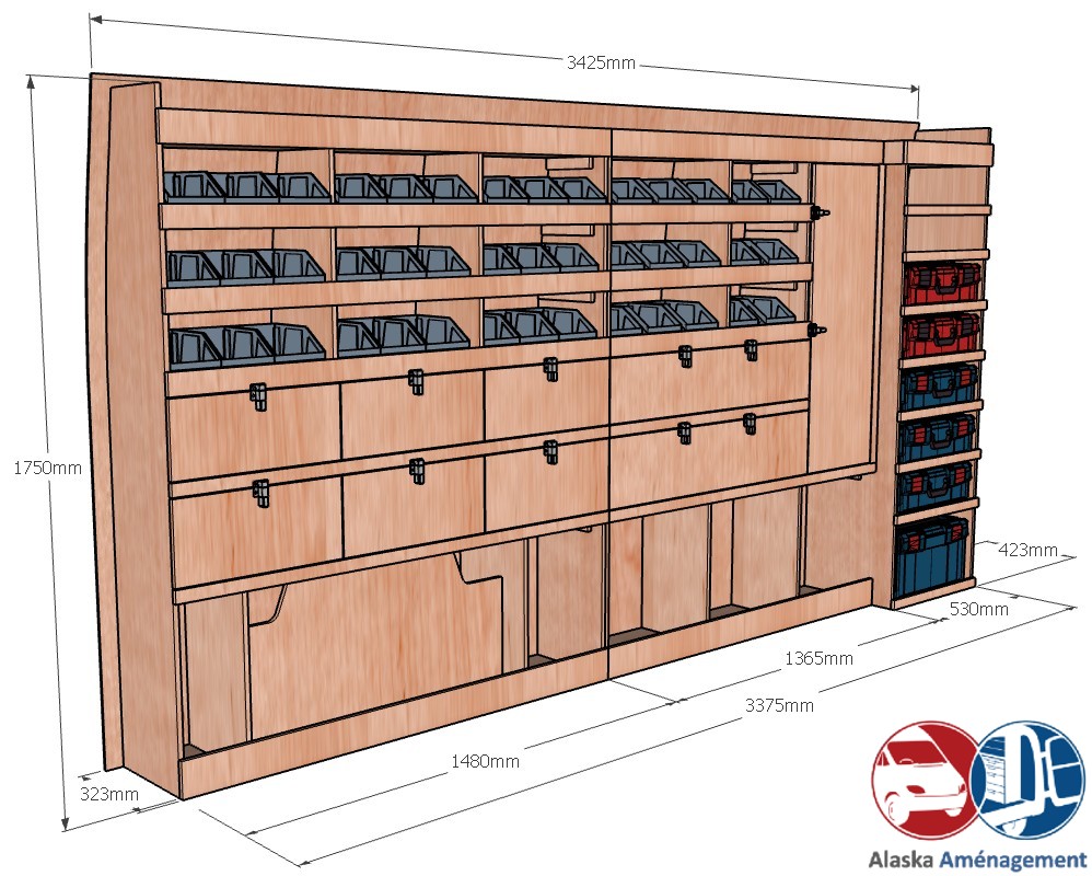 • Structure Renforcée et Protectrice : Le meuble intègre un fond arrière de 8 mm qui renforce sa structure et le solidarise. Un avantage économique direct pour vous : il protège efficacement la carrosserie de votre fourgon, vous dispensant d’installer un habillage latéral supplémentaire !