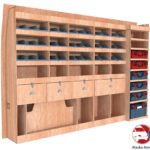 • Accès Immédiat à vos équipements :  Cinq niveaux d’étagères dont trois spécialement conçus pour accueillir des bacs à bec (nombre modulables). Finie la recherche de petites pièces !