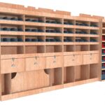 • Module pour Électroportatif : Un module vertical dédié au rangement de vos mallettes d’outils (type Festool Systainer, Makita, Facom etc.). Des rebords de maintien assurent une stabilité parfaite pendant le transport.