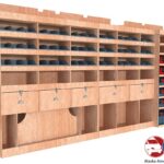 • Accès Immédiat à vos équipements :  Cinq niveaux d’étagères dont trois spécialement conçus pour accueillir des bacs à bec (nombre modulables). Finie la recherche de petites pièces !