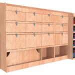 Ce meuble de rangement KRMG004-N (pour le latéral « Gauche » de votre véhicule) offre une solution polyvalente et fonctionnelle avec cinq niveaux de stockage. Il comprend des rangées de clapets et un module spécifique pour les mallettes d’électroportatif. Une étagère supérieure est conçue pour les objets longs. Son fond arrière intégré assure la rigidité et protège la carrosserie du véhicule, évitant un habillage supplémentaire. Le meuble est disponible en contreplaqué brut ou filmé.