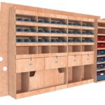 Ce meuble de rangement KRMG004-N (pour le latéral « Gauche » de votre véhicule) offre une solution polyvalente et fonctionnelle avec sept niveaux de stockage. Il comprend des étagères pour bacs à bec, une rangée de tiroirs et un module spécifique pour les mallettes d’électroportatif. Une étagère supérieure est conçue pour les objets longs. Son fond arrière intégré assure la rigidité et protège la carrosserie du véhicule, évitant un habillage supplémentaire. Le meuble est disponible en contreplaqué brut ou filmé. |