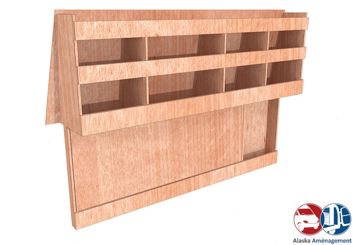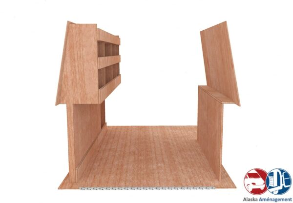 Ce pack comprend un meuble de rangement sur le côté gauche, un plancher de protection ainsi que des habillages pour les côtés et les portes. Il permet de mieux organiser votre matériel tout en gardant votre véhicule en bon état.