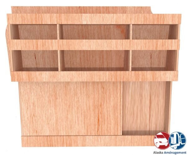 Ce pack comprend un meuble de rangement sur le côté gauche, un plancher de protection ainsi que des habillages pour les côtés et les portes. Il permet de mieux organiser votre matériel tout en gardant votre véhicule en bon état.