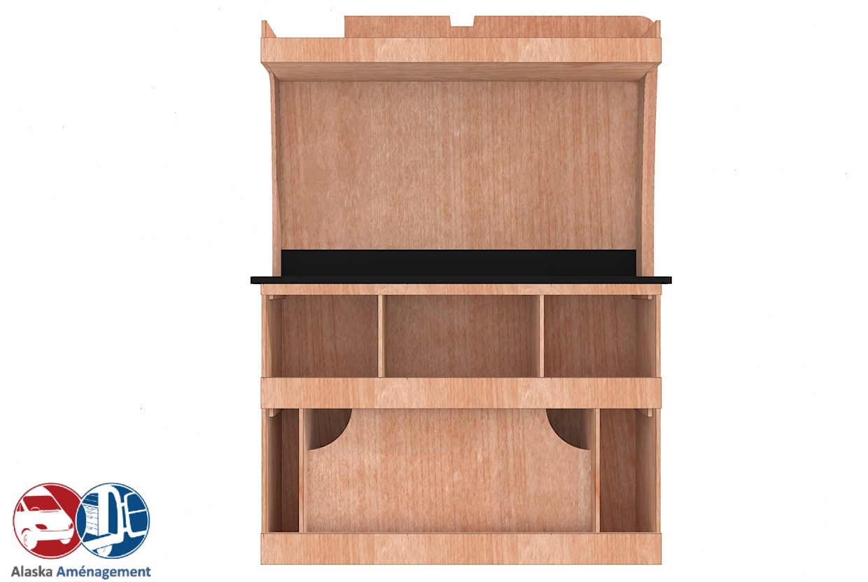 Le meuble propose plusieurs étagères pour un rangement optimisé, et l’établi offre un plan de travail robuste avec espaces pour vos outils. Simple, pratique et durable, le PACK KRETA transforme votre véhicule en atelier mobile performant.