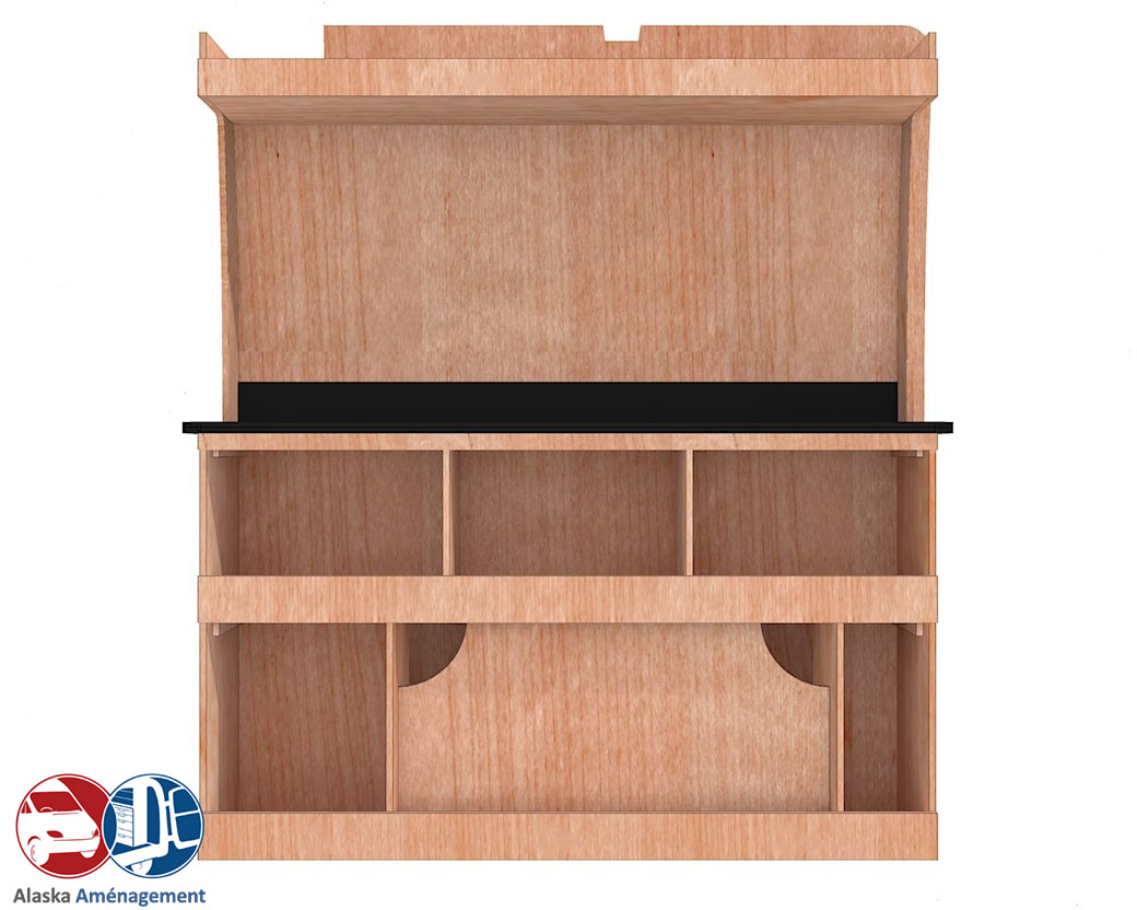 Le meuble propose plusieurs étagères pour un rangement optimisé, et l’établi offre un plan de travail robuste avec espaces pour vos outils. Simple, pratique et durable, le PACK KRETA transforme votre véhicule en atelier mobile performant.