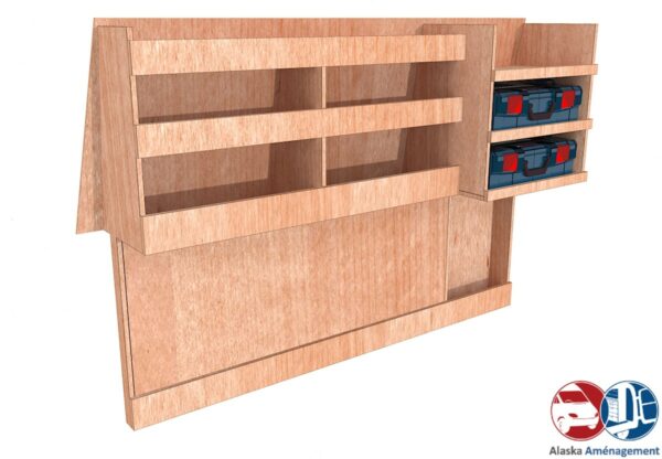 Ce pack comprend un meuble de rangement sur le côté gauche, un plancher de protection ainsi que des habillages pour les côtés et les portes. Il vous aide à mieux organiser votre matériel tout en préservant l’intérieur de votre véhicule.